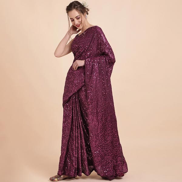 Burgundy Embellished Sequinned Pure Georgette Saree