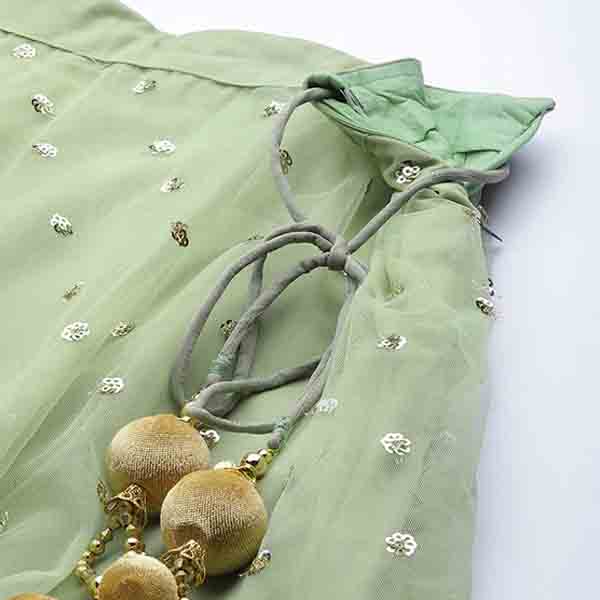an amazing range of womens ethnic wear in soft and solid colors that looks perfect for festive wear. with beautiful designs and patterns. these apparels are very stylish and comfortable too. get rid of the traditional look this season wearing lehenga choli by readiprint fashions. this lehenga choli from readiprint fashions exhibits net fabric green colour semi-stitched lehenga with sequence work & choli with net dupatta. tailored from net & art silk.