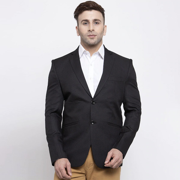 Men Black Solid Tailored-Fit Single-Breasted Blazer