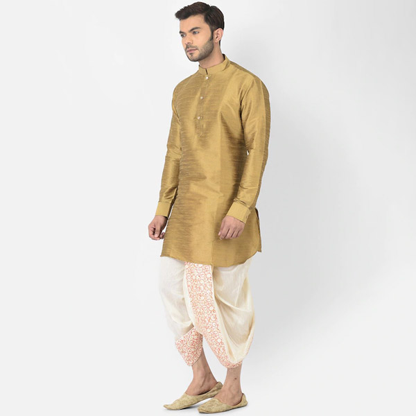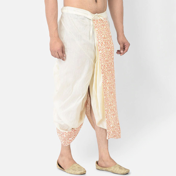 Men Off White & Orange Printed Dhoti Pants