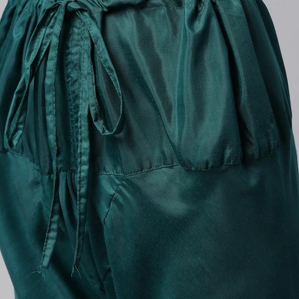 Teal Embroidered Art Silk Semi-Stitched Dress Material