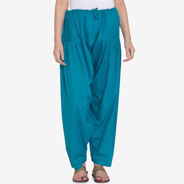 Blue solid mid-rise loose-fit salwar with pleated detail, has an elasticated waistband with a drawstring closure