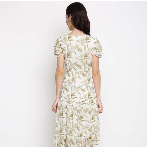 Show your exceptional style with this A-line dress, beautifully tailored with premium fabric, detailed with botanical print design, half sleeves sleeves, square neck, and amazing flare.